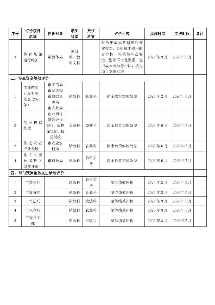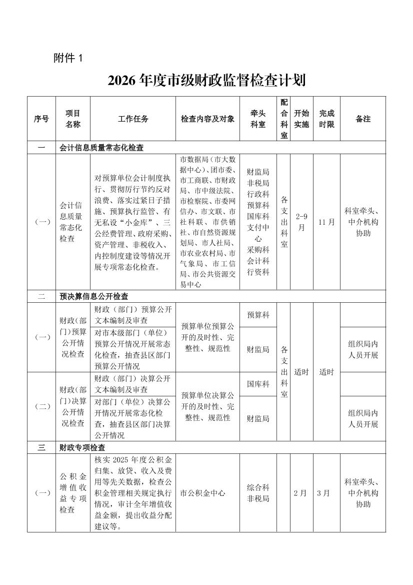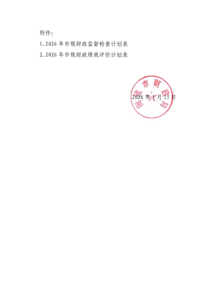 关于印发《2026年市级财政监督检查与绩效评价计划》的通知