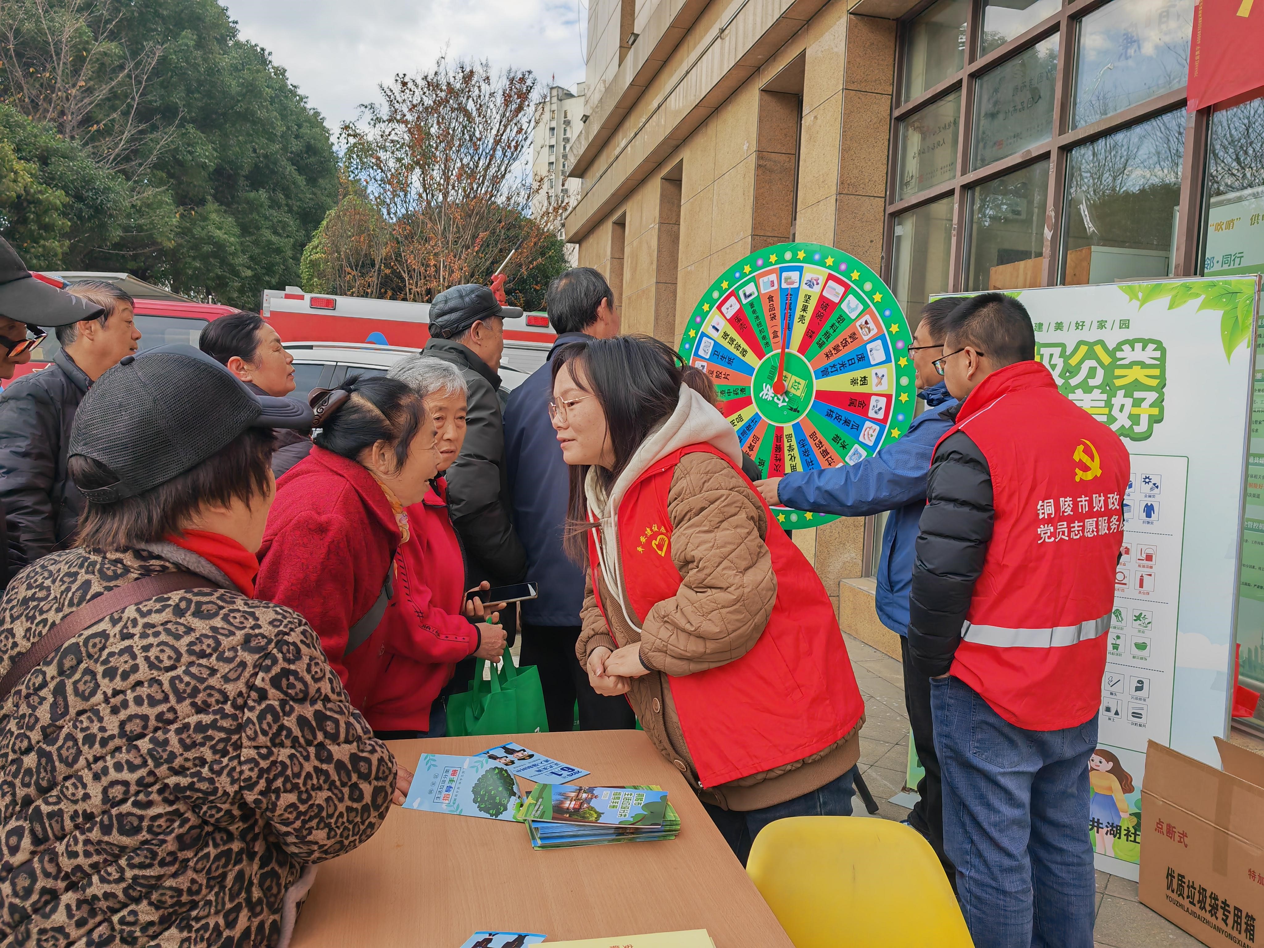 活动现场,市财政局党员志愿者与社区工作人员通过“设置展板+资料发放+互动答疑”多种形式,向社区居民普及垃圾分类的意义、分类标准、安全生产等知识,引导社区居民从源头做起,养成“随手分类”的良好习惯。