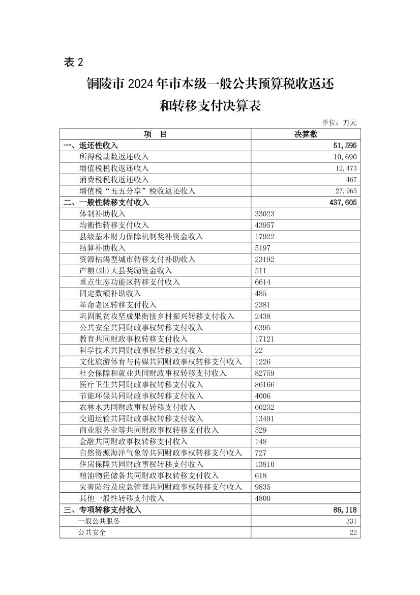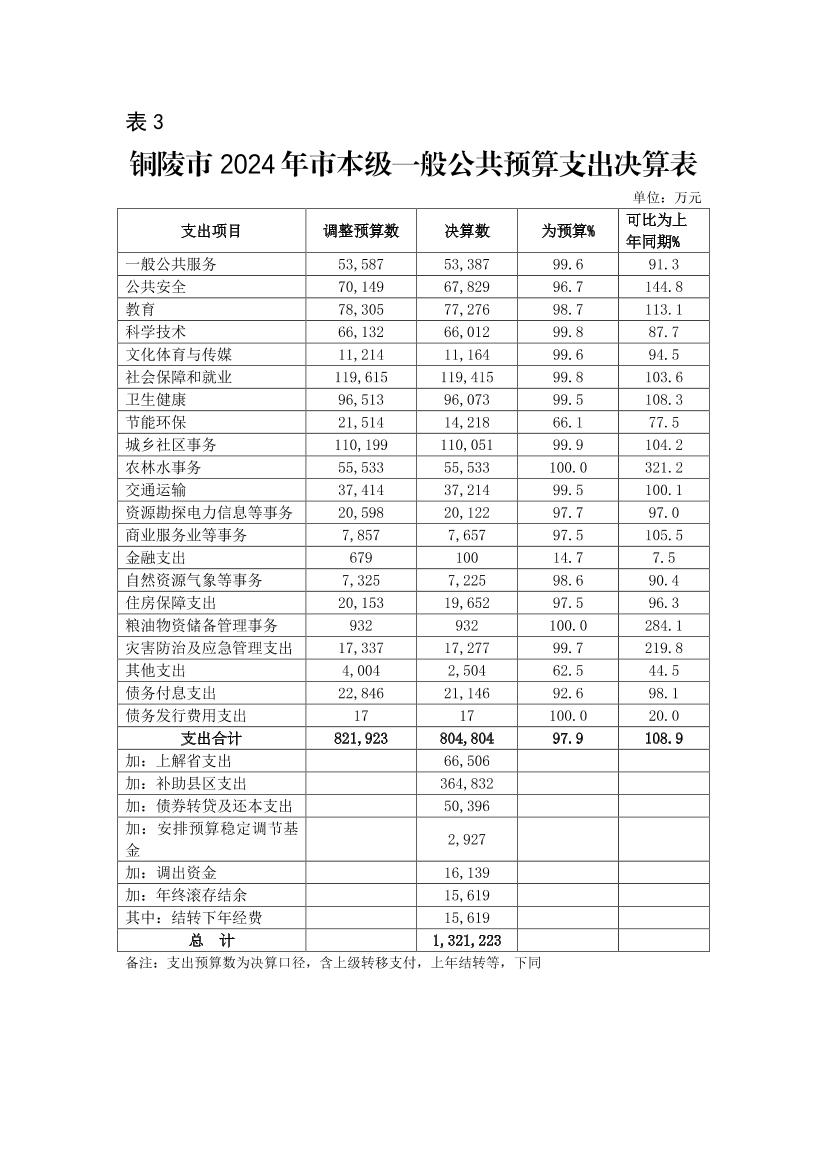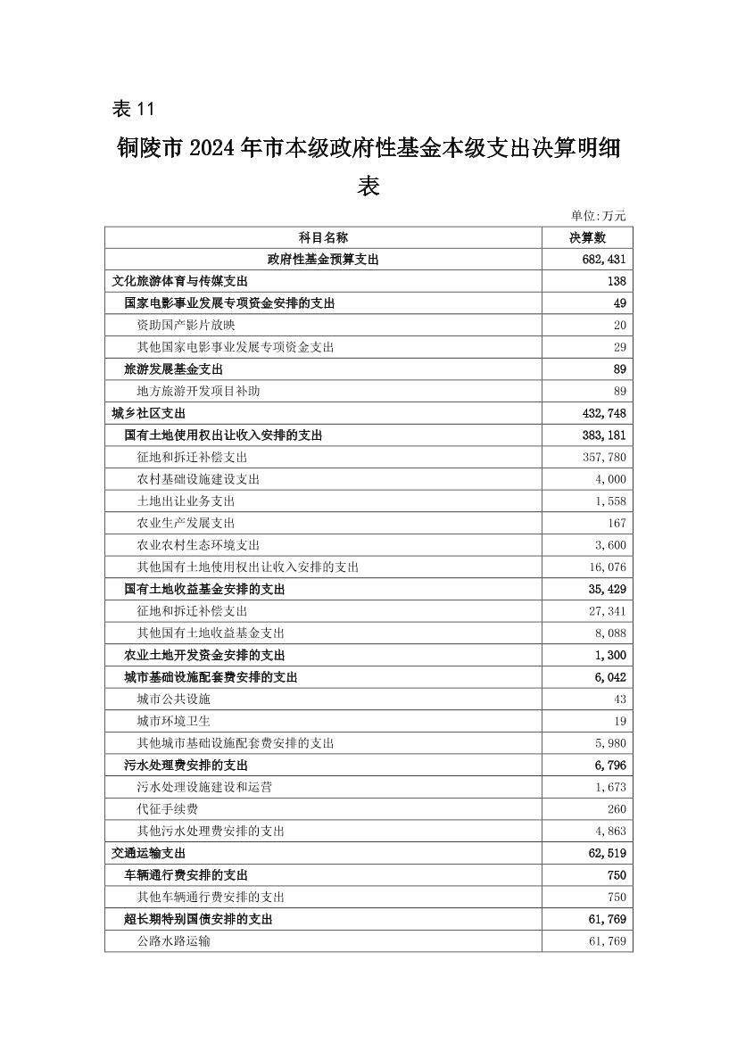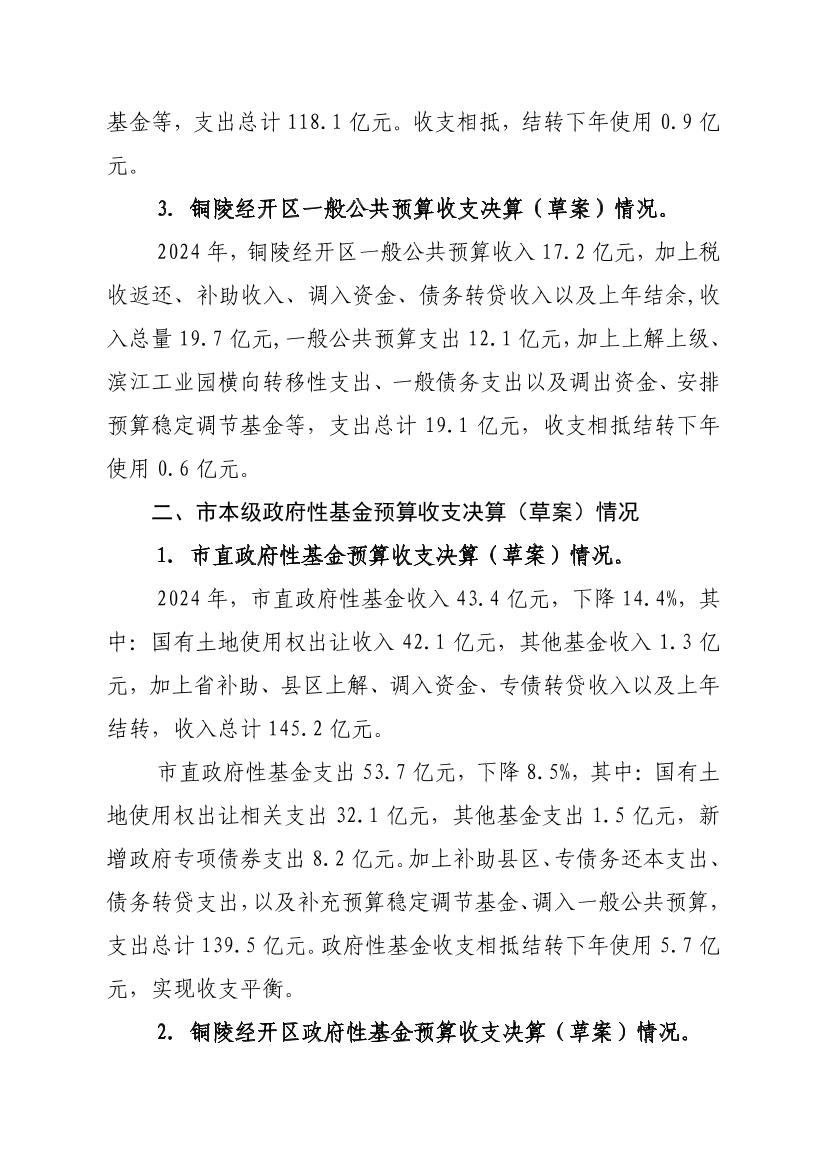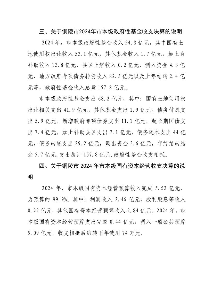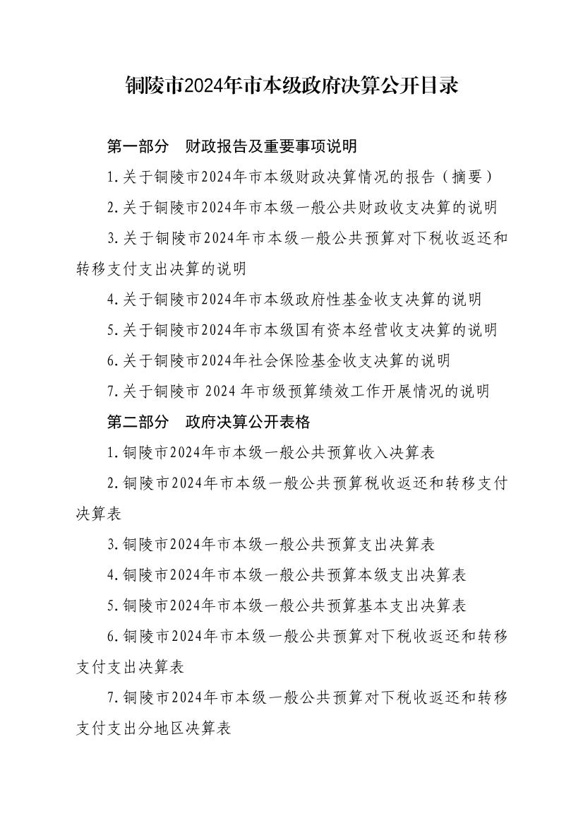 2024年铜陵市级政府决算信息公开