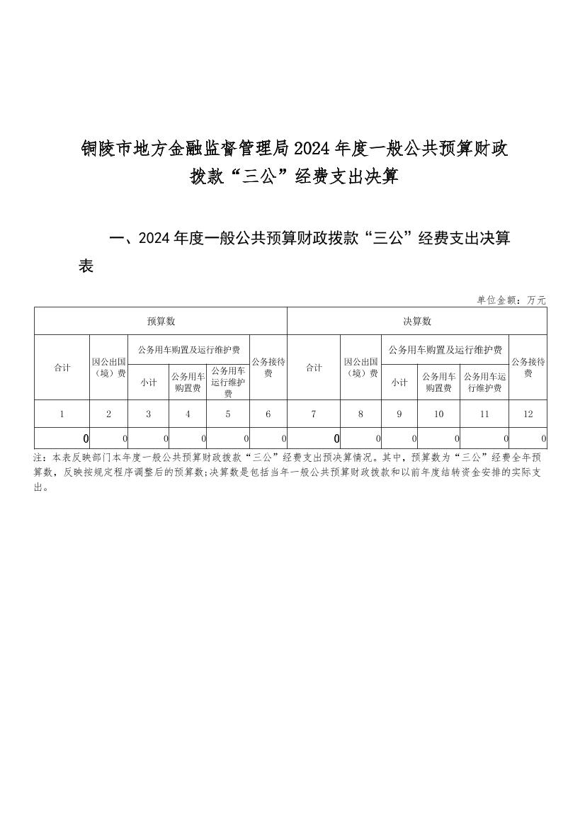 铜陵市地方金融监督管理局2024年度一般公共预算财政拨款“三公”经费支出决算 - 澳门威尼斯人