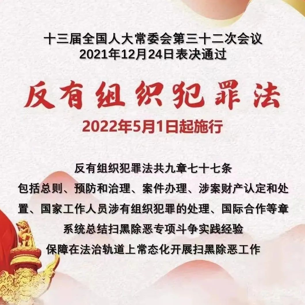 第一条为了预防和惩治有组织犯罪,加强和规范反有组织犯罪工作,维护国家安全、社会秩序、经济秩序,保护公民和组织的合法权益,根据宪法,制定本法。